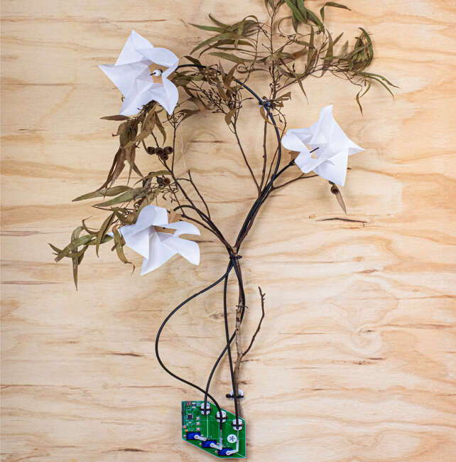oribokit® allows you to make your own robotic garden at home. The assembled kit grafts onto a tree branch or other sculptural form and is designed to minimise materials usage and maximise modular recyclability for robotic origami applications.